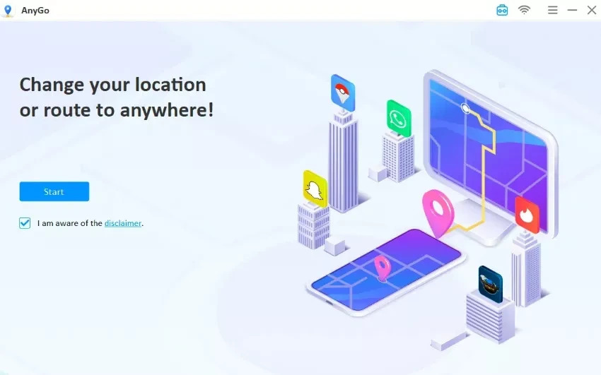 Download AnyGo from the official website and install it on your Windows computer. Open the program and click Start.